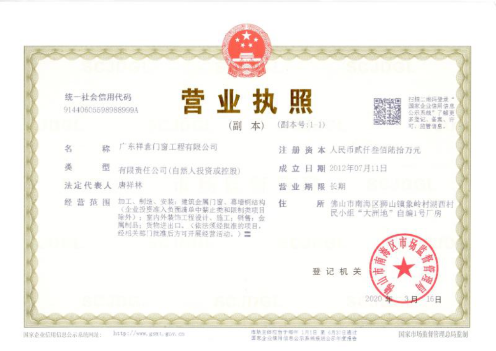 廣東祥意門窗工程有限公司是一家專注鋁合金門窗工程及門窗加工、制作的優(yōu)質企業(yè)。公司憑著精湛的技術服務和優(yōu)良的售后服務,已成功完成多個優(yōu)質項目。